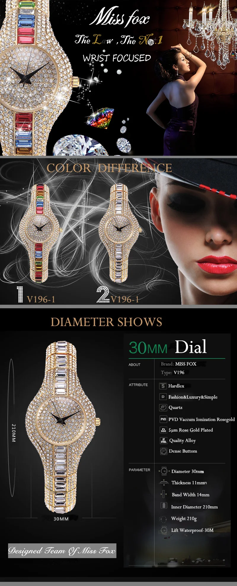 MISSFOX 30 مللي متر ساعة نسائية صغيرة للصدمات مقاوم للماء السيدات الفاخرة Ar ساعة معدنية أساور حجر الراين Bu الساعات الصينية الرخيصة