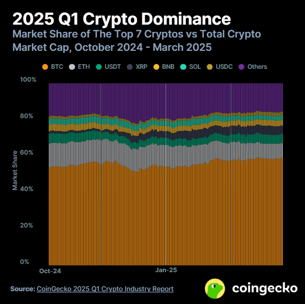 According to CoinGecko’s 2025 Q1 Report, the cryptocurrency market, led by Bitcoin, lost nearly one-fifth of its value in the first quarter of 2025, fully negating the gains made towards the end of 2024.