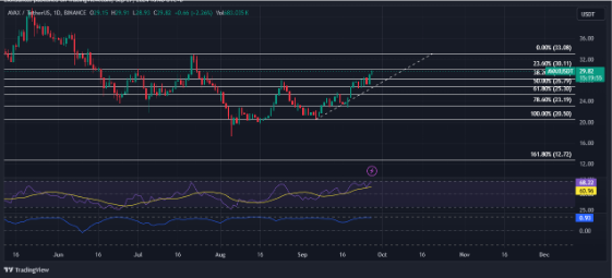 If the token does get rejected by the $30.11 resistance, the bulls can rely on AVAX’s present support level at $26.79 for long-term movement.