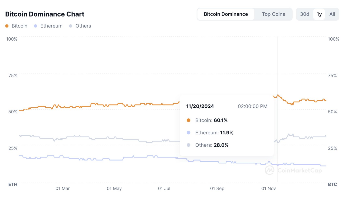 “Importantly for the long tail, $BTC dominance has been slowly fading since late November ’24 – fireworks if that continues,” VC firm Placeholder partner and former ARK Invest crypto lead Chris Burniske said.